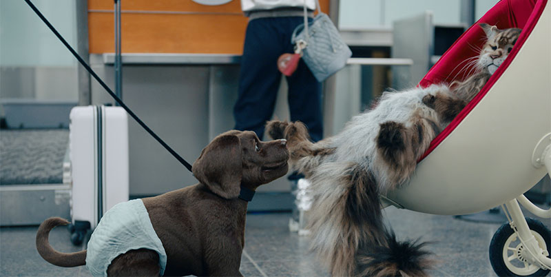 O pisică și un câine scapă din cuștile lor în aeroport, iar stăpânii lor trebuie să lucreze împreună pentru a-și recupera animale de companie.